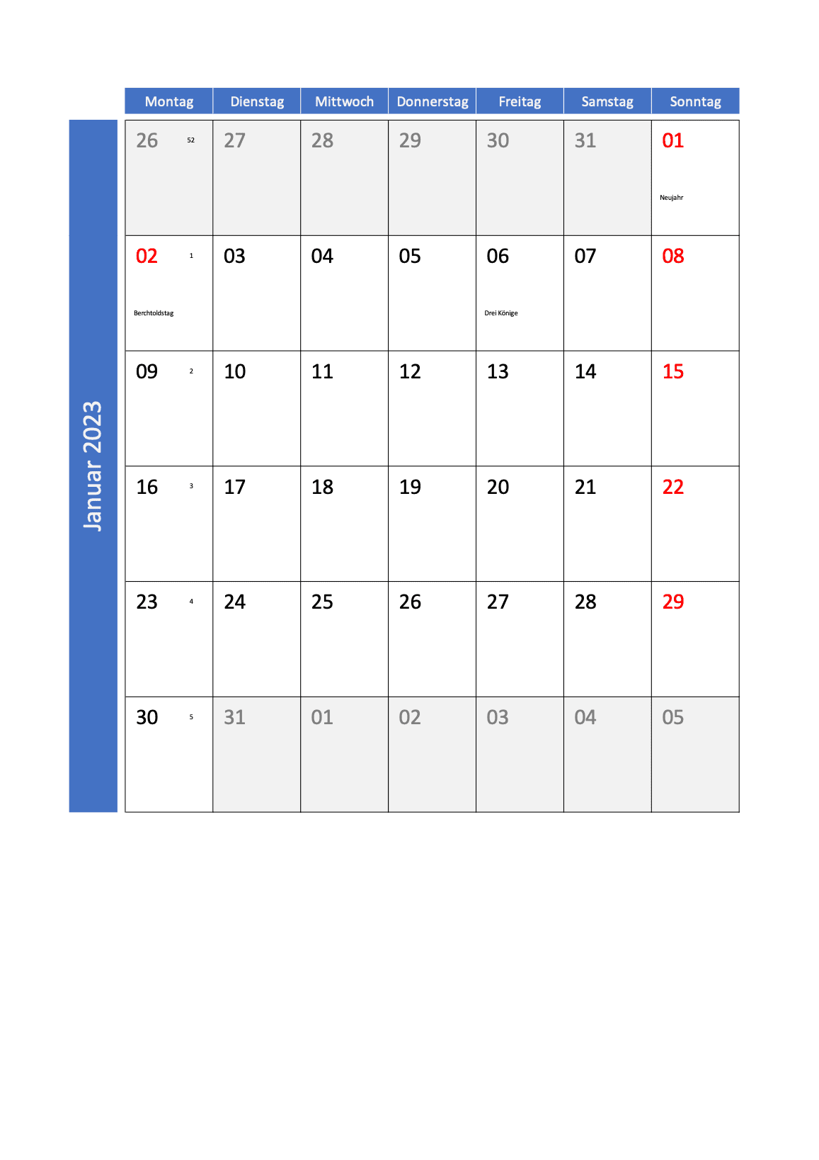 Monatskalender 2023 Schweiz zum Ausdrucken im Excel- und PDF mit Feiertagen & Kalenderwochen